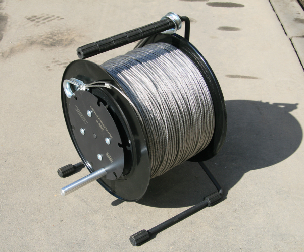 •Копирная струна на катушке – трос из нержавеющей стали толщиной 3 мм и длиной 500 м; •Стойки металлические заострённые длиной 1 м и толщиной 16 мм – 50 шт.; •Комплект для крепления струны к стойке и регулирования высоты струны (струбцина-зажим и направляющая длиной 0,3 м с канавкой под трос 3мм) – 50 шт.; •Лебёдка-натяжитель струны усилием 0,9 т на подставке для крепления к стойкам.